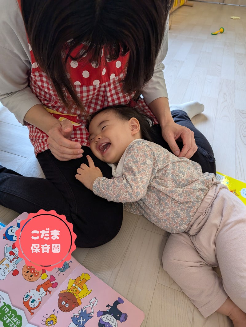 保育室では、保育士にくっつくのが嬉しくてケラケラと笑う声が響いていますニコニコニコニコ
