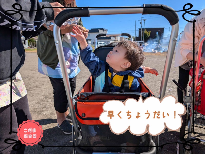 朝から数百メートル先で開催されている“やきいも会”のいい香りが、こだま保育園まで風に乗って届いて来ました。