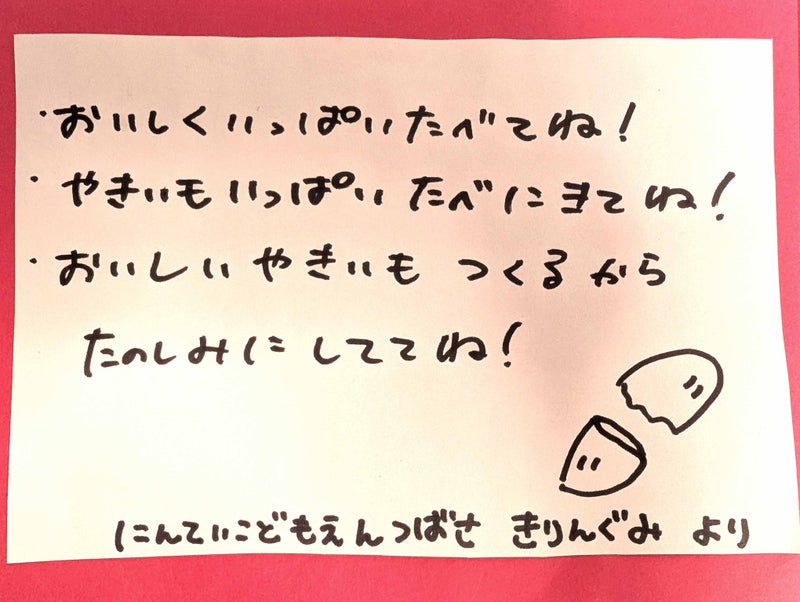 「早くちょうだい!」と、おねだりする子もいて、みんな“やきいも会”を楽しみました。