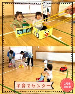 こんにちは、こだま保育園です。今週は、近くの“子育てセンター”へ出かけました 月齢の大きい子達は、“子育てセンター”の体育館で遊びました。ままごと用のベビーカーを押して、お人形のお世話をして遊びました“アンパンマン号”に […]