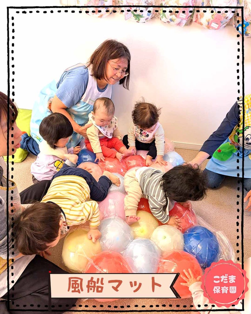 子供達はフワフワのマットの上に乗って、歩いたり、ひっくり返ったり、寝転んだり、、、いろいろな動きで、『風船マット』の不思議な感覚を楽しんでいました立ち上がる
