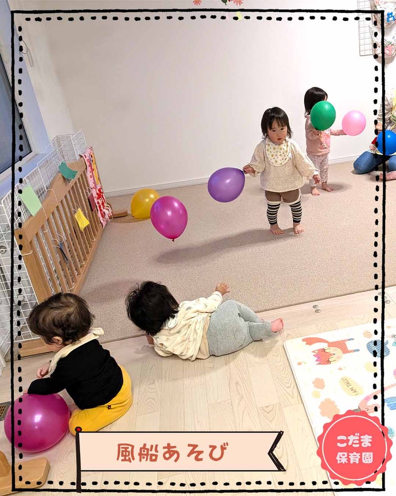 「ヘリコプター♬ヘリコプター♬飛んで行けー!」と、歌に合わせて、タイミグ良く風船を手から放すことが出来るようになりました。