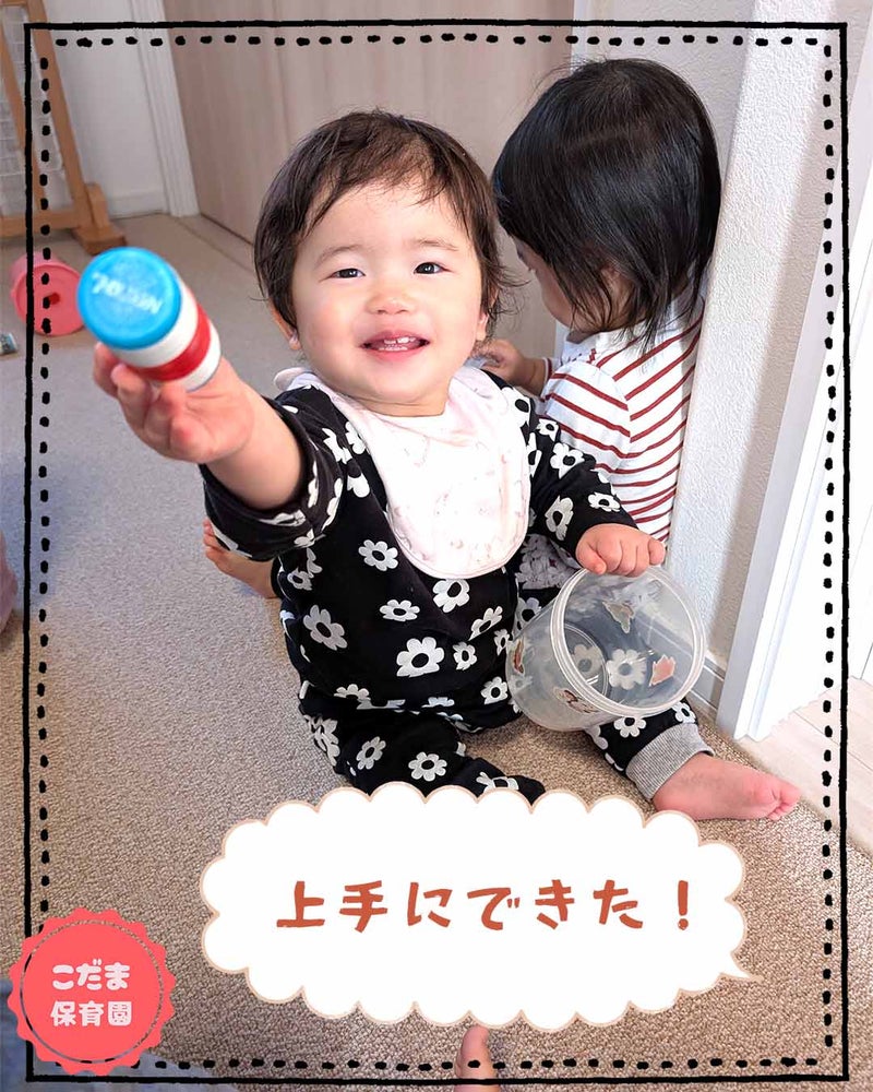 室内あそびでは、手先を使った遊びで「上手に出来た!」とアピールして笑顔をみせてくれます![]()