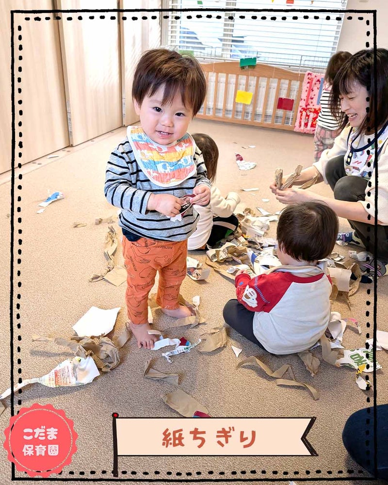 子供達は、小さなおててで、一生懸命に紙を小さくちぎっていました。