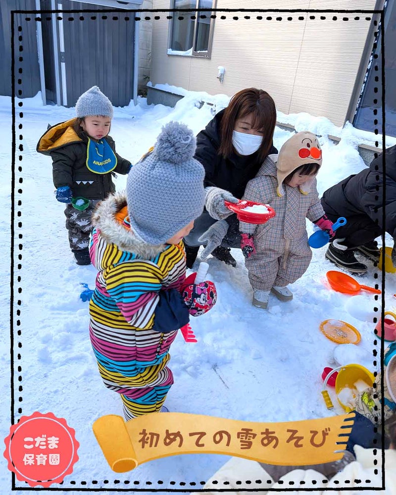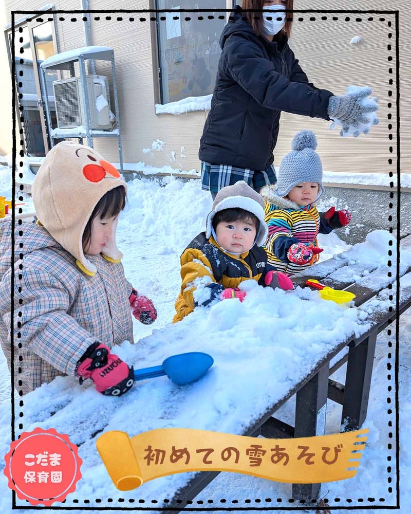 保育園では、子供たちにとって初めての雪あそびをしました。