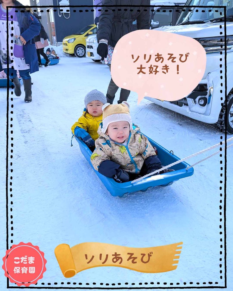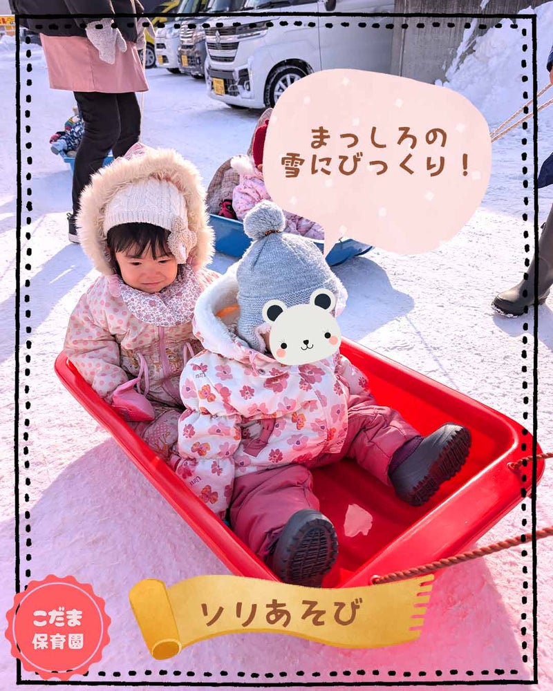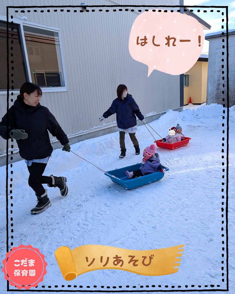 保育士が子供たちを順番にソリに乗せて、ソリ遊びもしました![]()