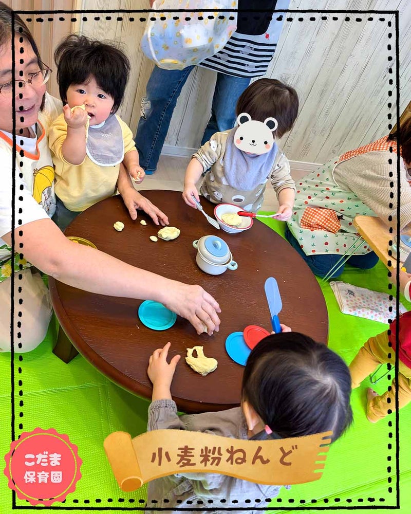 保育士と一緒に、粘土をコネコネしたり、、、