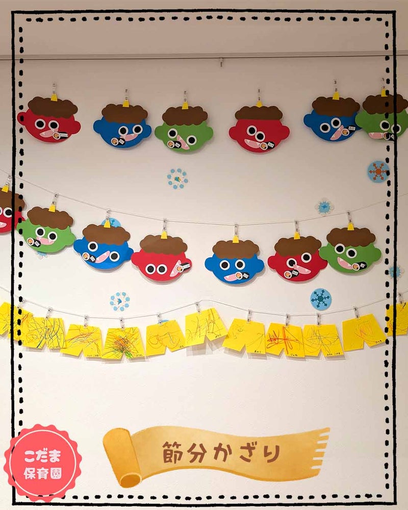 保育園の壁は、節分のかざりでいっぱいです![]()