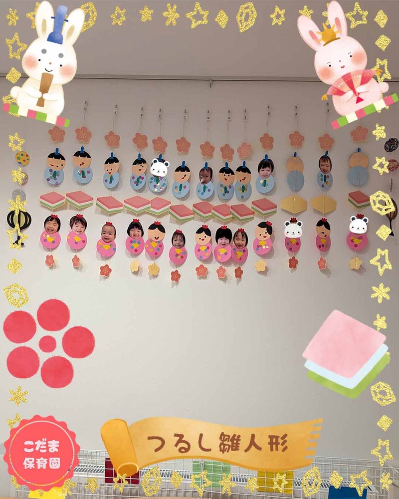 おひな祭りを前に、保育園の壁には、『つるし雛人形』を飾りました。