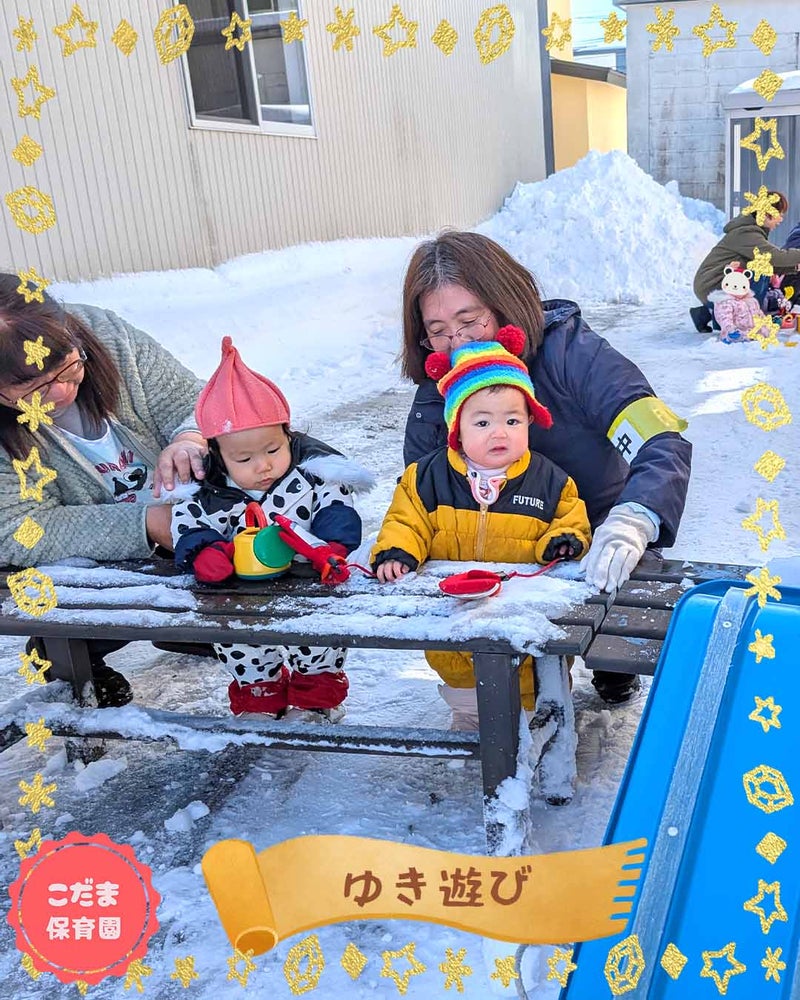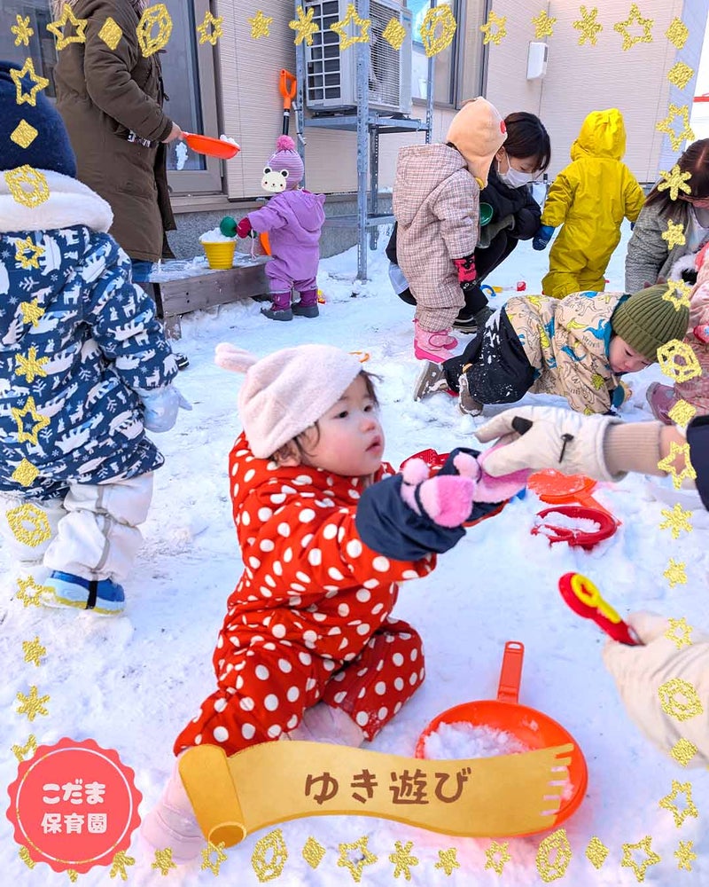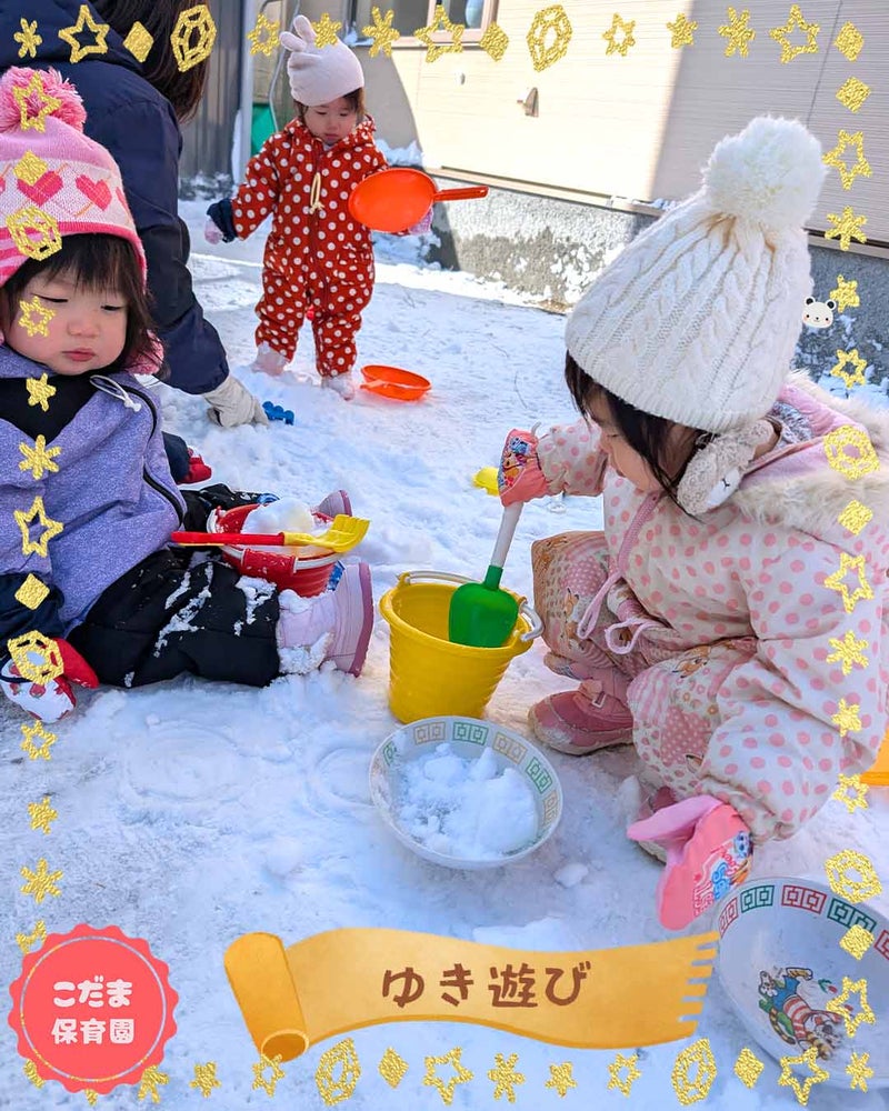 スコップやバケツで、雪をサクサクといじって、おままごと遊びもしました![]()