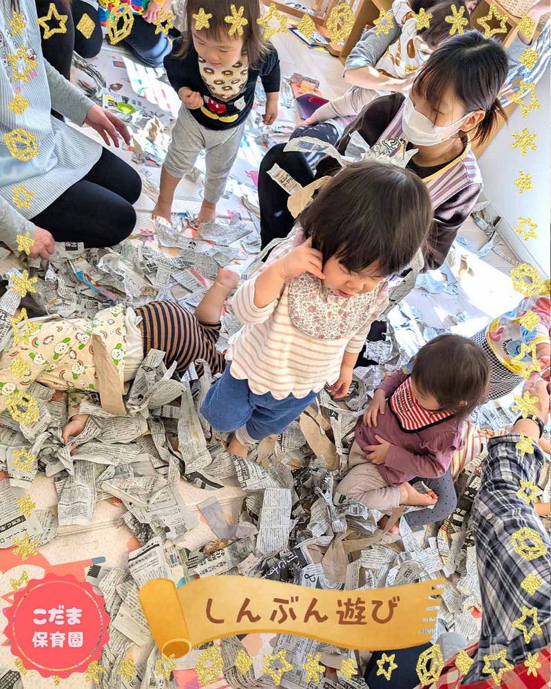 ダイナミックに遊ぶ子もいれば、新聞紙を小さく小さくちぎって楽しむ子もいました。