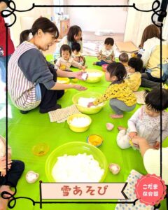 こんにちは、こだま保育園です。12月までは少なかった雪も、1月に入ってからたくさん積もりました保育園では、子供たちにとって初めての雪あそびをしました。寒い外で遊ばせるために、準備がとても大変です 子供達ひとりひとりに、手 […]
