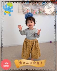 こんにちは、こだま保育園です。今週も楽しいこといっぱいで、楽しく保育園生活をおくっています 節分を前に、“鬼さん”に親しんでもらいながら、遊んでいます頭にツノが生えた“鬼さん帽子”をかぶり、とら模様のパンツを履いて、“鬼 […]