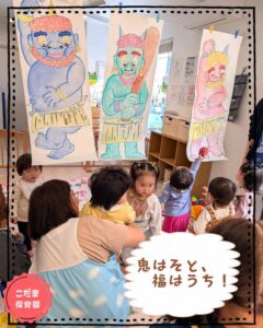 こんにちは、こだま保育園です。今週は、保育園でも節分の行事を催しました鬼に関連した色々な遊びを用意して、厄祓いをしました。 まずは、鬼さんの絵本を読んでもらいました。みんな、釘付けになって絵本に見入っていました 「おにー […]